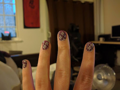One last step before it's all done: the top coat. The stamped polish is pretty much immediately dry, so after you're done stamping all your nails you can paint on the top coat - but one more piece of advice: your top coat brush will literally pull the stamp with it as you apply it. My advice is to carefully and lightly dab the top coat onto your nail. Swipe it as little as possible. Once it dries, add another top coat in the normal fashion.